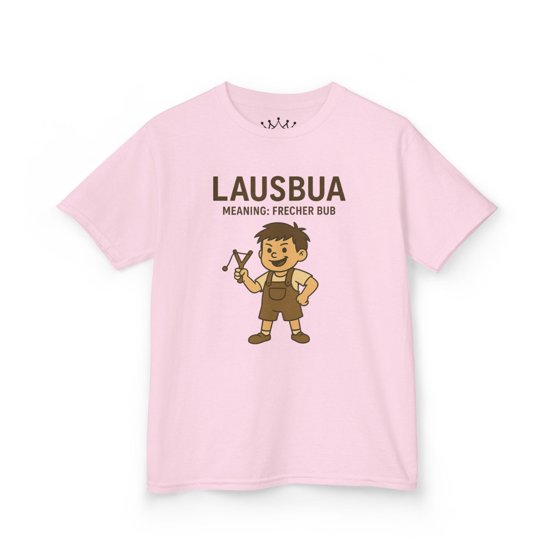 Ein süßes und witziges Kinder-T-Shirt – perfekt für kleine Buben! Das Shirt trägt das österreichische Wort „Lausbua“, was so viel wie „frecher Bub“ bedeutet, und bringt damit auf charmante Weise Persönlichkeit in die Garderobe jedes kleinen Wirbelwindes. Ideal für den Alltag und bequem für kleine Kinder – dieses Shirt macht einfach Spaß!